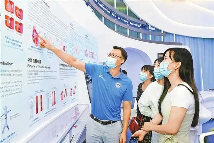7月6日,先健科技大廈,工作人員向參觀者講解相關技術。