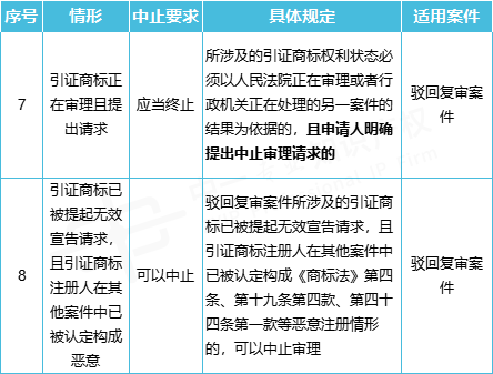 (二)适用不予注册复审、无效宣告的中止情形有: