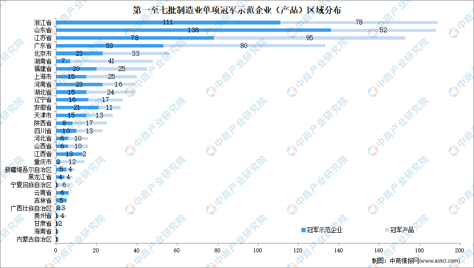 日前,工信部发布了“第七批全国制造业单项冠军示范企业和产品”名单,全国共计有339家企业上榜,其中单项冠军示范企业为140家、单项冠军产品为199个。截至目前,第一至七批名单共计1200家企业上榜,其中单项冠军示范企业为604家、单项冠军产品为596个。